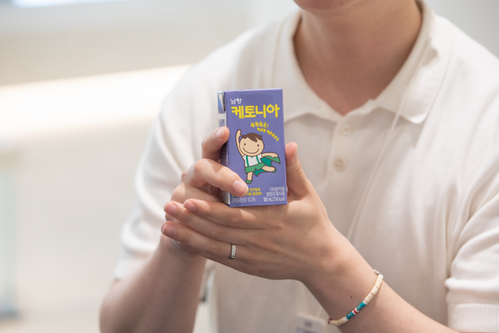 그중에서도 뇌전증 환아를 위한 케토니아 개발에 집중하게 된 건 현장에서 만난 보호자분의 절실한 목소리 때문이었어요. 케톤생성 식이요법*은 뇌전증 환아에게 매우 효과적인 치료법 중 하나지만, 영양 설계가 매우 까다롭고 아이가 섭취를 거부하면 다른 대체식이 거의 없거든요. 현재 국내에서 유일하게 남양유업이 케토니아를 생산하고 있어요. 그런 만큼 책임감을 가지고 생산과 연구개발을 진행하고 있습니다.