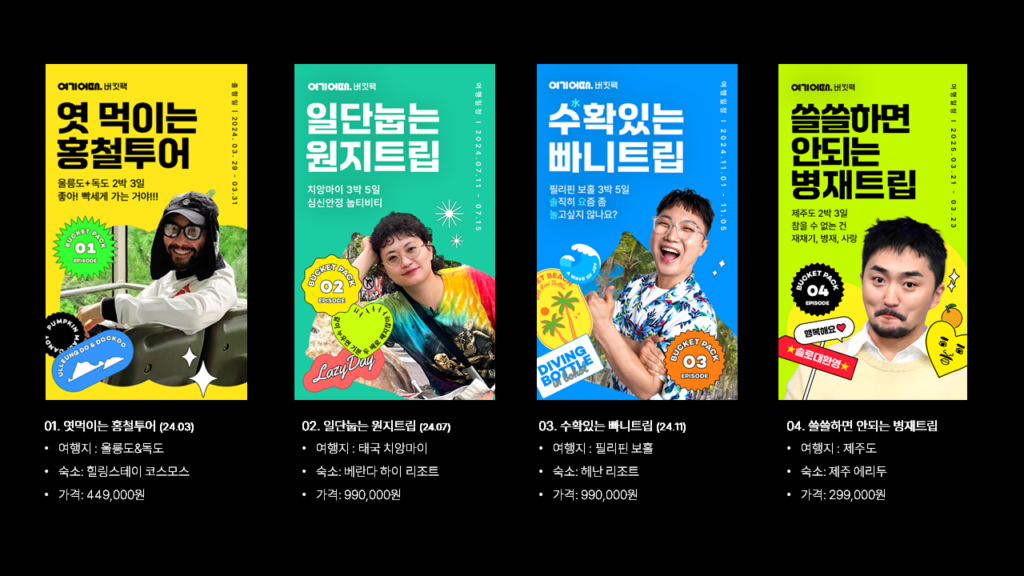 여기어때 버킷팩 프로젝트도 처음부터 팬덤을 타깃으로 시작했던 건 아니었어요. ‘팬을 위한 여행’을 만든다기보다는, ‘정말 재미있는 여행 경험’을 설계해 보자는 데서 출발했죠. 그 과정에서 ‘버킷리스트’라는 키워드가 자연스럽게 떠올랐고, 만약 누군가가 인생의 버킷리스트를 좋아하는 셀럽과 함께 이룰 수 있다면 얼마나 특별할까? 이런 상상이 실제 프로젝트로 발전하게 되었어요.